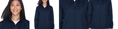2 oz., 78 gsm 100% polyester pongee; water-resistant finish; center front reverse coil zipper with autolock slider and reflective toggle; lower concealed pockets with zippers; adjustable shockcord at hem; reflective piping at front shoulders;