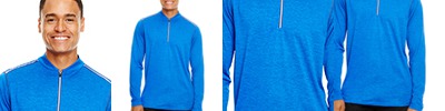100% polyester birdseye mesh, 4.7 oz./yd2/160gsm; Moisture wicking, antimicrobial and UV protection performance; translucent zipper with contrast treading ; inside placket with chin guard; subtle contrast coverstitch details at raglan and back sleeves ; underarm gusset; decorative reflective print on left front and back;