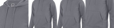 9 ounce 60% cotton/40% polyester athletic fleece ; Jersey-lined hood; Drawcord in hood on Adult sizes only ; Set-in sleeves ; Front pouch pocket ; Rib-knit cuffs and bottom band.;