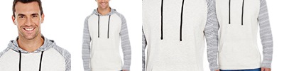 4.9 oz. 65/35 cotton/polyester; Solid jersey body; Raglan sleeves; Pouch pockets; Hem cuffs and bottom; Drawstring hood;