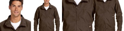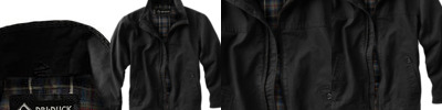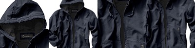 10 oz. 100% cotton canyon cloth™ canvas; 12 oz. snow top polyester sherpa lined collar and back yoke; Double chest patch pocket with snap closure ; Quilted nylon-lined body with 3oz of polyfil insulation; Triple-needle stitching to reinforce high stress seams; Heavy-duty metal zipper with easy grab puller; Inside cell phone pocket;