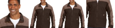 90% polyester,10% spandex face bonded with 100% polyester microfleece interior; Heathers: 100% polyester; Wind and water-resistant; Zippered chest and hand pockets; Adjustable cuffs; Auto-lock zipper with easy-grab zipper pull; Media port; Interior Cell Phone Pocket w/ Hook & Loop Closure 8"L x 6"W;