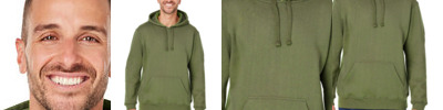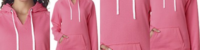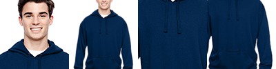 8.5 oz. 60% cotton, 40% polyester fleece; Triple-needle contrast accent stitching; Contrast jersey hood lining and drawcord; Raglan sleeves; Front pouch pocket;