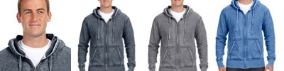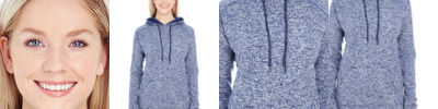 7 oz., 100% spun polyester fleck fleece; Contrast zipper and front pouch pocket; Thumbholes on cuffs;