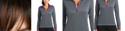 Dri-FIT moisture management technology and stretch fabric make this long sleeve polo a true performer for her. Tailored for a feminine fit with a self-fabric collar, five-button placket and open cuffs. Heat transfer label for tag-free comfort. Dyed-to-match buttons. Side vents. The contrast Swoosh design trademark is embroidered on the center front, below the placket. Made of 5-ounce, 100% polyester Dri-FIT fabric.