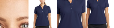 A modern tribute to the unparalleled Nike heritage, this sophisticated polo has a subtle, grid-like texture and is engineered with Dri-FIT moisture management technology. Tailored for a feminine fit. Design details include a self-fabric collar with an open Y-neck placket and open hem sleeves. The contrast heat transfer Swoosh design trademark is on the left sleeve. Made of 4.2-ounce, 100% polyester Dri-FIT fabric.