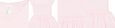 5 oz., 100% combed ringspun cotton 1x1 baby rib; Heather: 90% combed ringspun cotton, 10% polyester; White is sewn with 100% cotton thread; 1/4" single needle binding on neck; Double needle hem ruched sleeves; 1/4" single needle binding on gathered skirt hem; Side seam construction; EasyTear™ label; CPSIA Compliant tracking label in side seam;