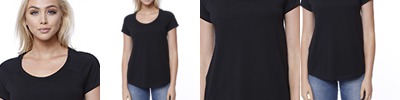 4.3 oz., 52% cotton 48% polyester, 30 singles; Ultra-fine cotton blend; Fashion fit; Side seams; Scooped neckline; Tear-away label; Made in a w.r.a.p. certified factory;