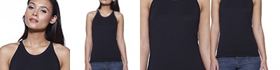 4.3 oz., 52% cotton 48% polyester, 30 singles; Ultra-fine cotton blend; Fashion fit; Side seams; Racerback | exposed shoulders; Tear-away label; Made in a w.r.a.p. certified factory;