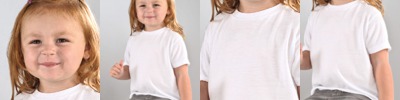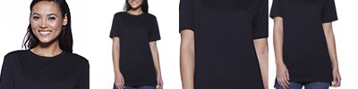 4.5 oz., 100% polyester; Moisture management jersey; Ribbed collar; Taped shoulder to shoulder with EasyTear™ label; Double-needle hemmed sleeves and bottom;
