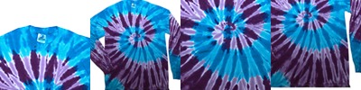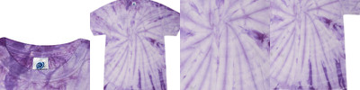 8.5 oz., 80% cotton, 20% polyester; Hand-dyed color combinations; No two are exactly alike; Wash separately; Reactive dyed tie-dye;