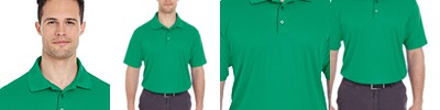 4.8 oz., 100% polyester mini-jacquard; Anti-bacterial; Moisture-wicking; Stain-resistant; UV 15-39 protection; Relaxed fit; Flat-knit collar;