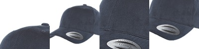 100% cotton; Green camo is 65% polyester / 35% cotton; 6-panel, Low-profile; Four-row stitching on visor; 3 1/8" crown; Unstructured; Matching undervisor; Antique brass buckle closure;