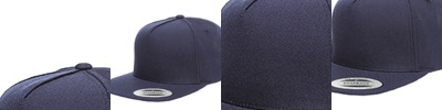74% polyester, 26% cotton; Style is transitioning from 65% polyester/35% cotton; Mixed fabric inventory may occur; 5-panel, structured, high-profile; Eight-row stitching on flat visor; 4" crown; Hard buckram backed front panels; Matching undervisor; Plastic adjustable closure;