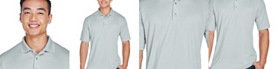 4.5 oz., 100% polyester; Anti-bacterial; Moisture-wicking; Pill-resistant; Snag-resistant; Stain-resistant; UPF 50+ protection; flat-knit collar; 4-button clean-finished placket with dyed-to-match buttons; neck tape; double-needle sleeves and curved bottom hems;