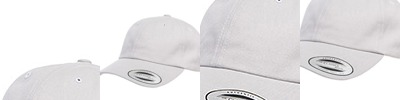 55% polyester / 43% cotton / 2% spandex; 3 1/2" Crown height; White front panels ; 8 rows of stitching on visor; Elastic Flexfit Trucker Mesh ; Hard buckram Silver undervisor;
